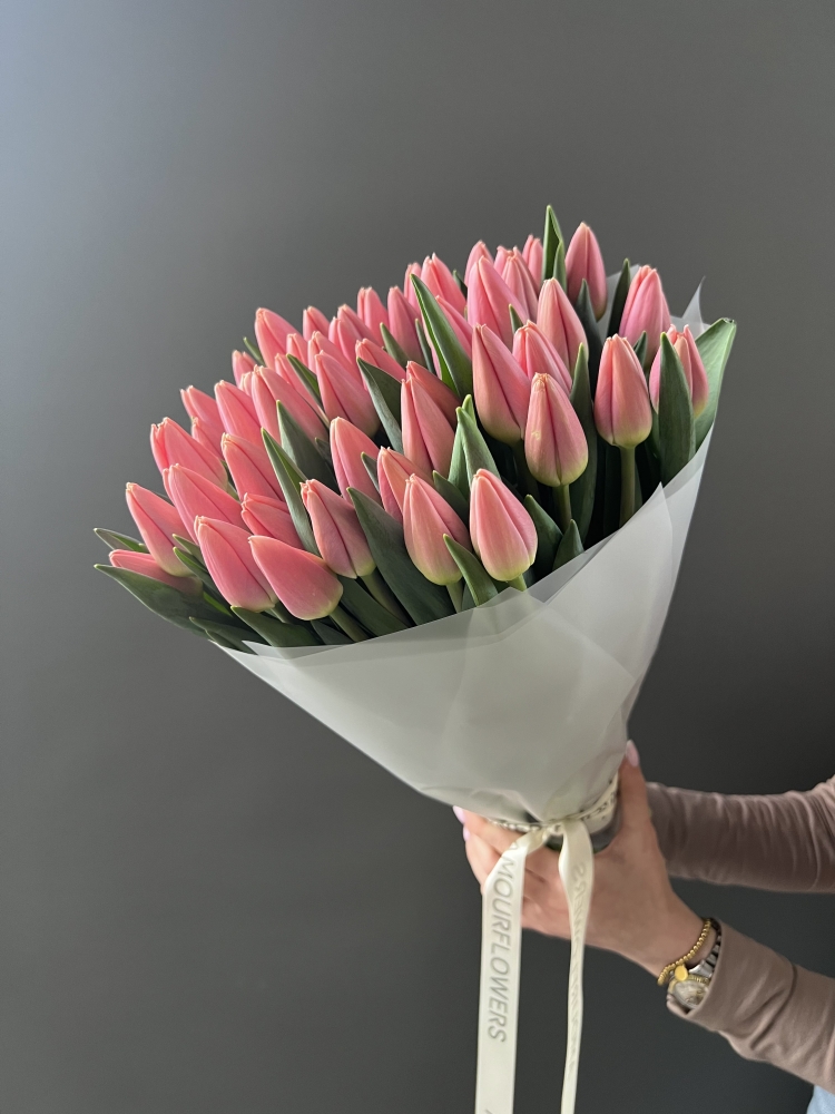 Розовые тюльпаны Трезор 51шт