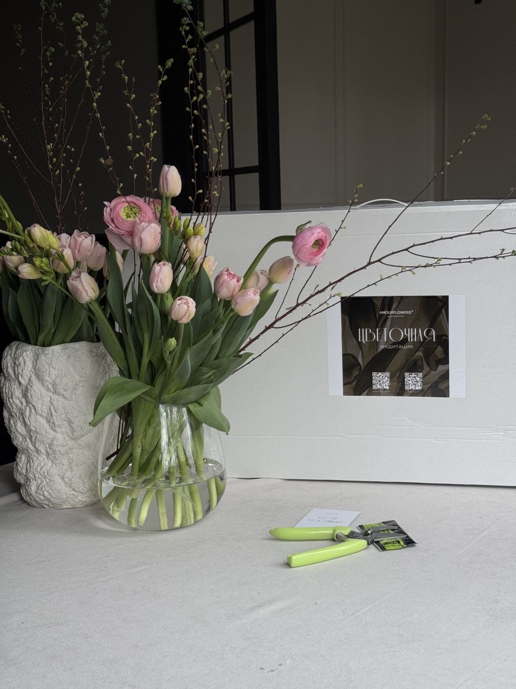 Набор в белой коробке "цветочная медитация" для самостоятельной аранжировки.