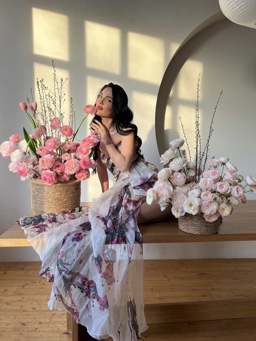 2. Композиция из пионовидных роз и кустовых пионовидных роз диаметром 40см