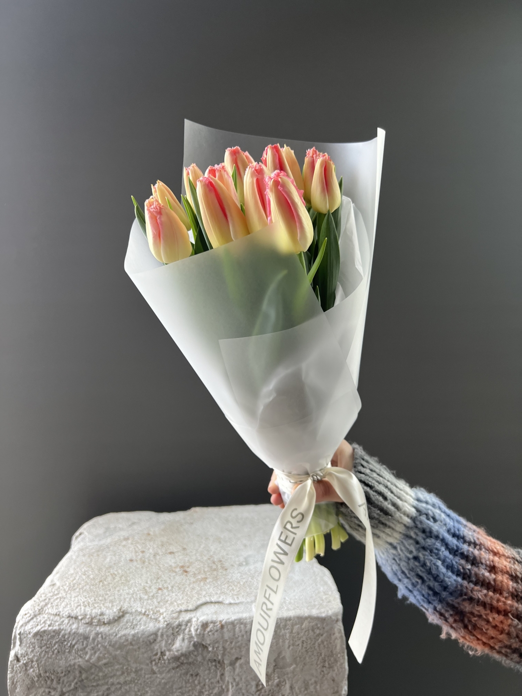 Букет тюльпанов Линжери нежного акварельного оттенка, 15шт. Диаметр букета 18см, высота 30см.